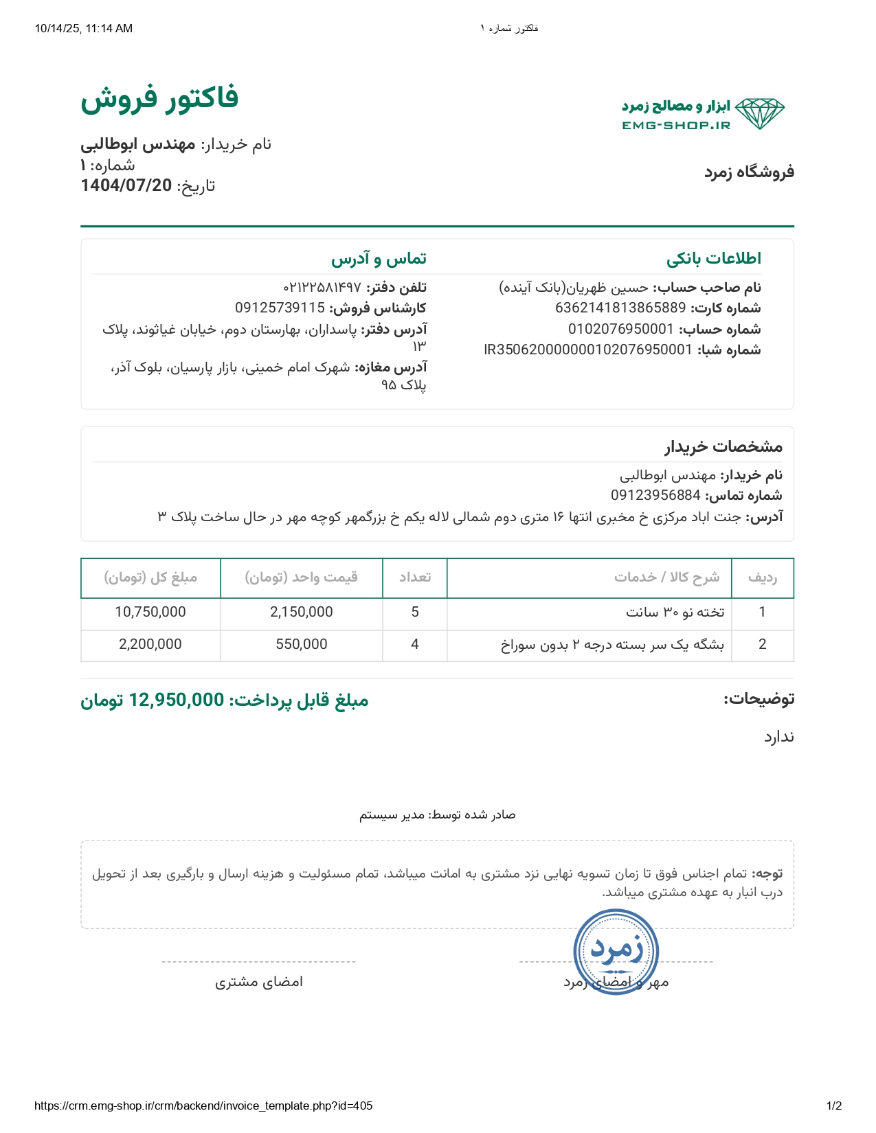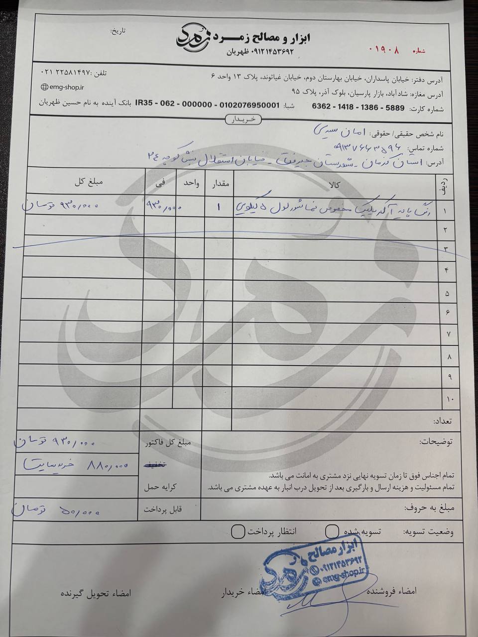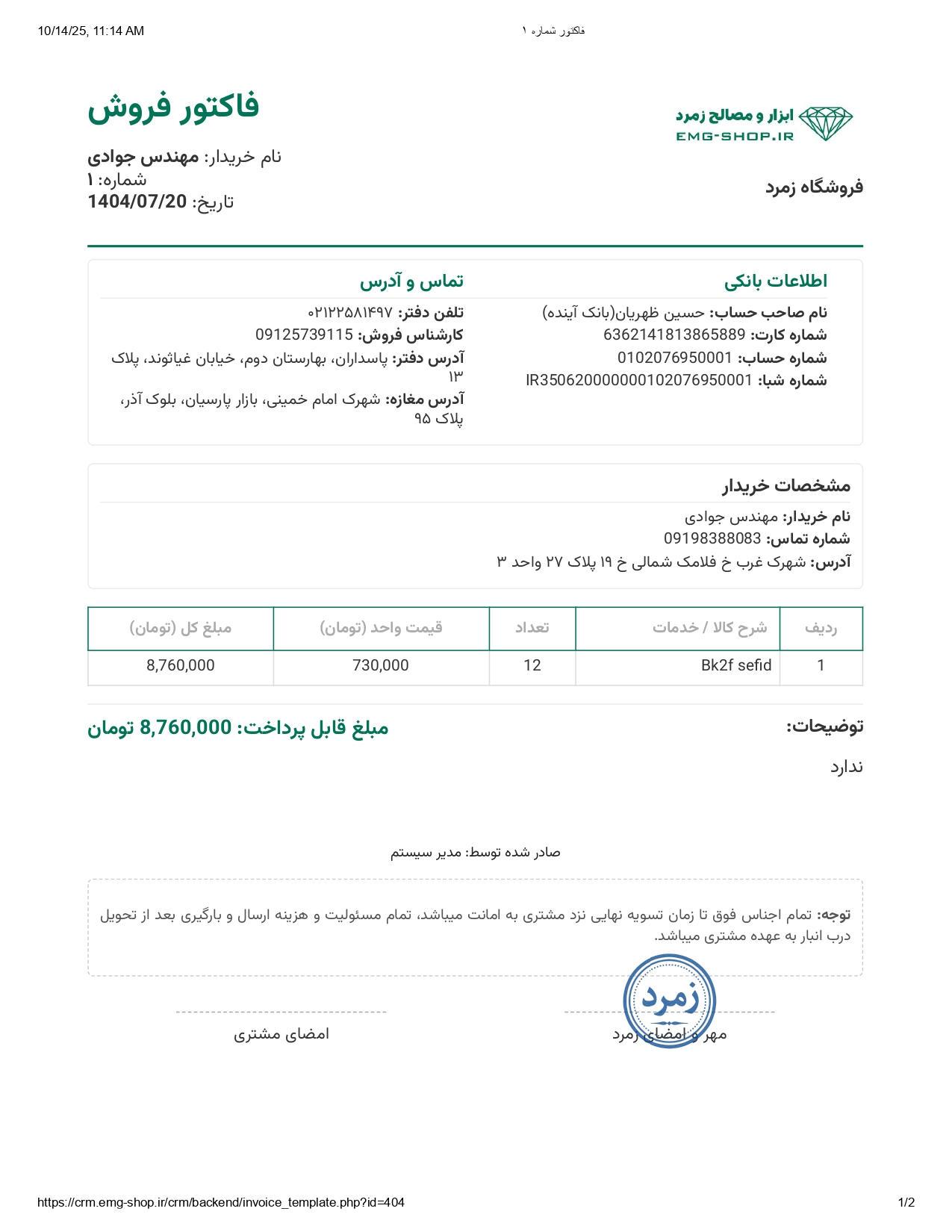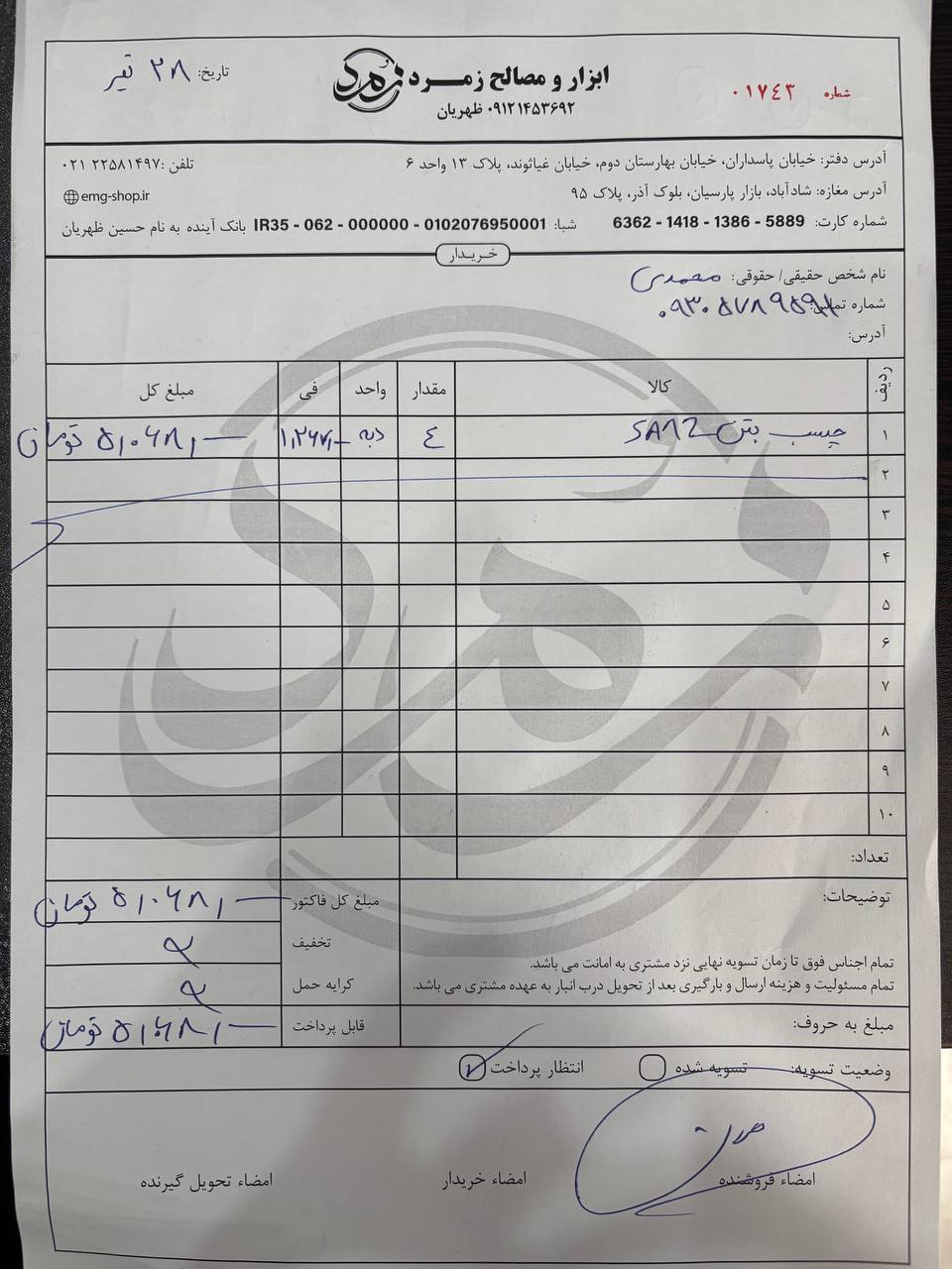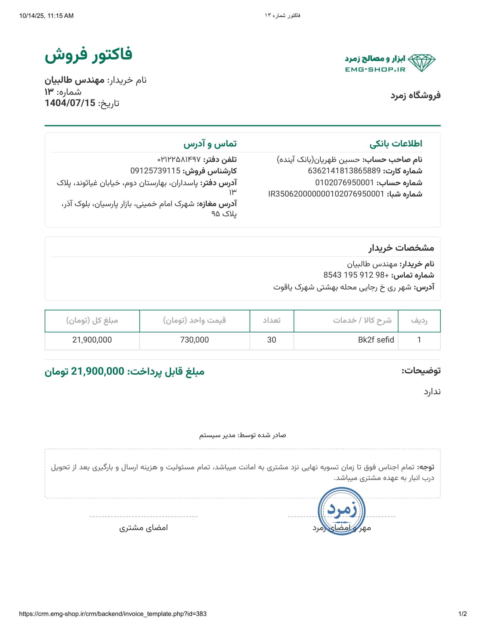 تعدادی از فاکتور های فروش مجموعه زمرد